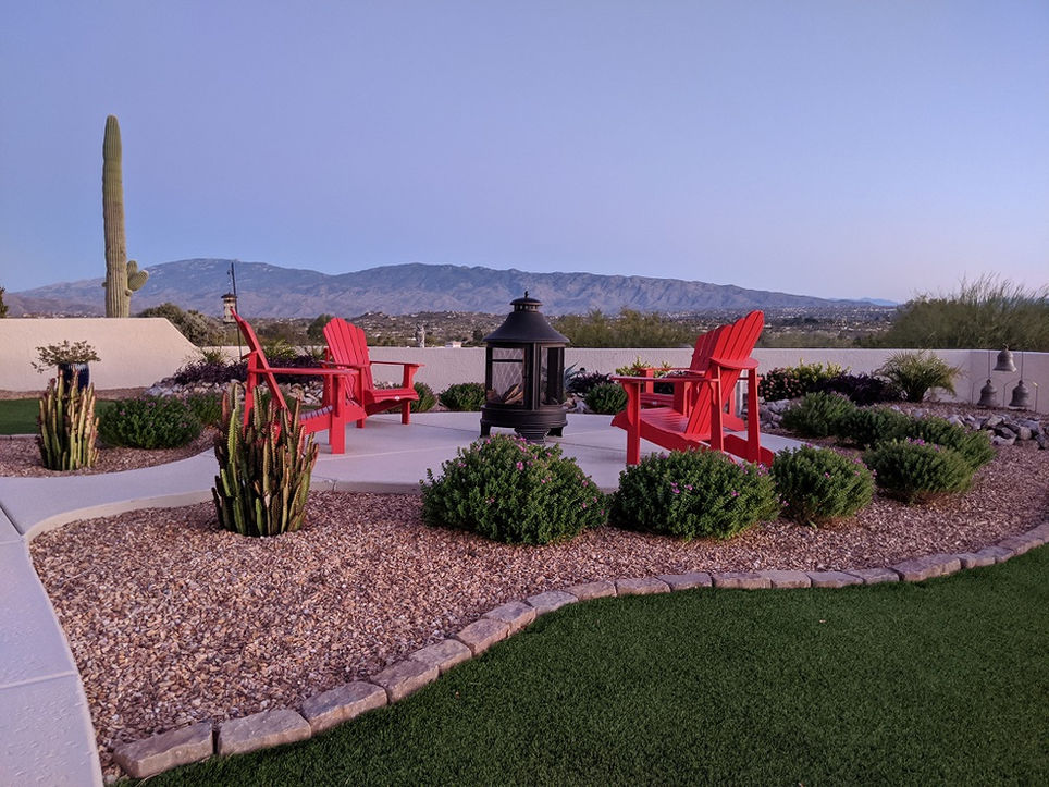 The Main Garden, located right off the Main Patio, has a serene, delightful layout guaranteed to relax even your most stressed-out relative. In addition to a variety of beautiful plantings, it also includes a sitting area with four Adirondack chairs, a large fountain, a gas firepit, and a relaxing two-person swing.
